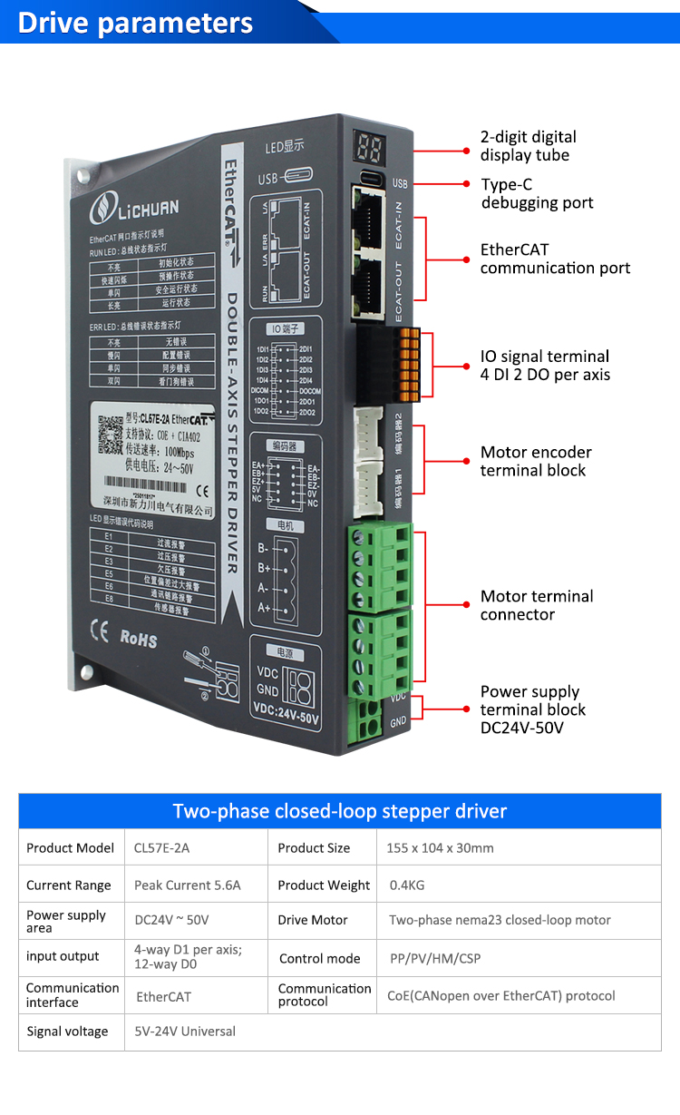 Sada ovladačů krokového motoru EtherCAT 2Phase Nema24 2osý DC s uzavřenou smyčkou