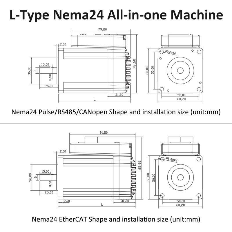 Sada ovladačů krokového motoru EtherCAT 2Phase Nema24 4osý DC s uzavřenou smyčkouL Typ Nema24 Integrovaný krokový motor má otevřenou/uzavřenou smyčku, která má pulzní řízení, sběrnici ethercat, sběrnici RS485. Inteligentní servosystém All-in-One Krokový motor s uzavřenou smyčkou s integrovaným ovladačem a enkodérem. Prostorově úsporný servosystém vše v jednom zjednodušuje instalaci. Velikost příruby: 60 mm. Přídržný moment 1nm.3nm.4nm Jsme původní továrna, máme certifikát CE, ROHS.