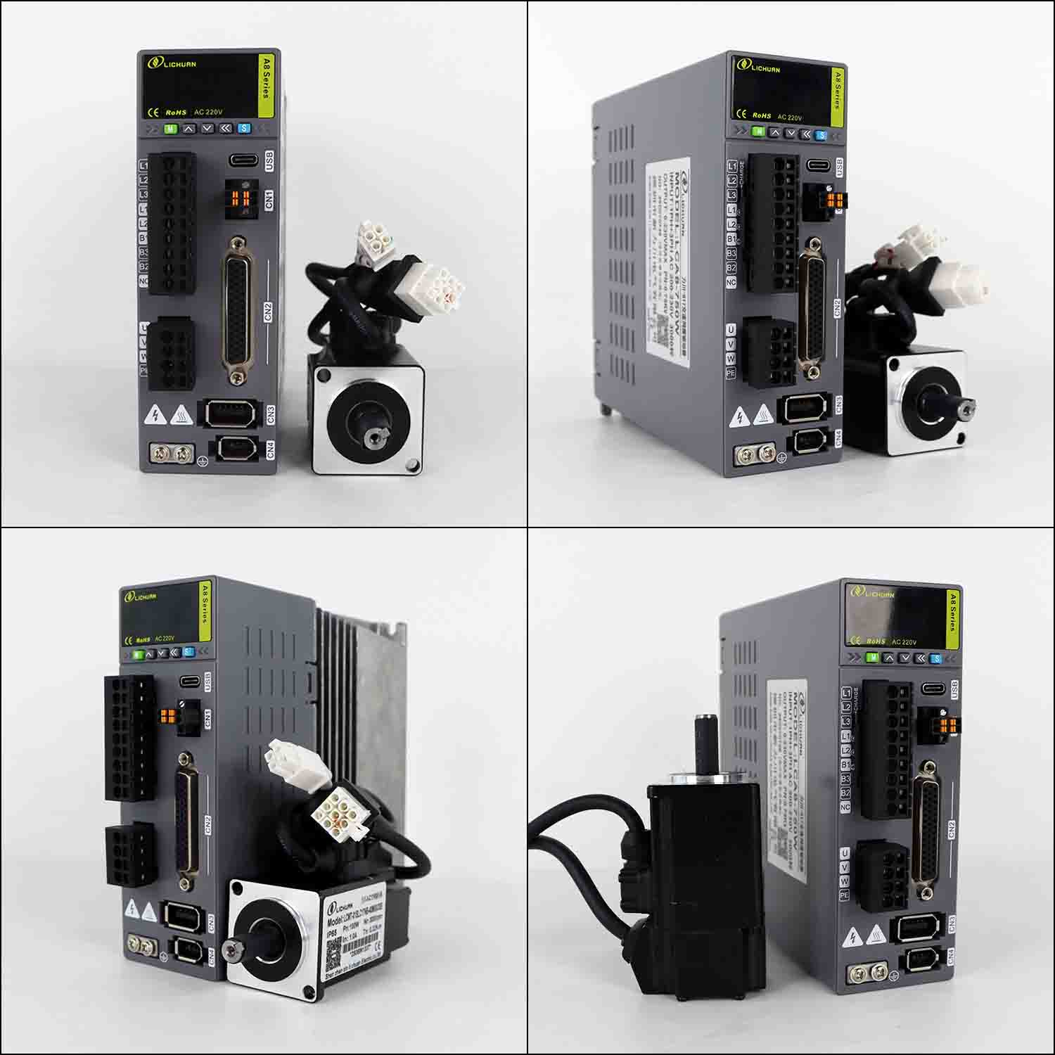 Sada ovladačů servomotoru Lichuan A8 Vysoce přesný STO ABZ 200W 0,637N.m 220V 1,6A 3000RPM IP65
