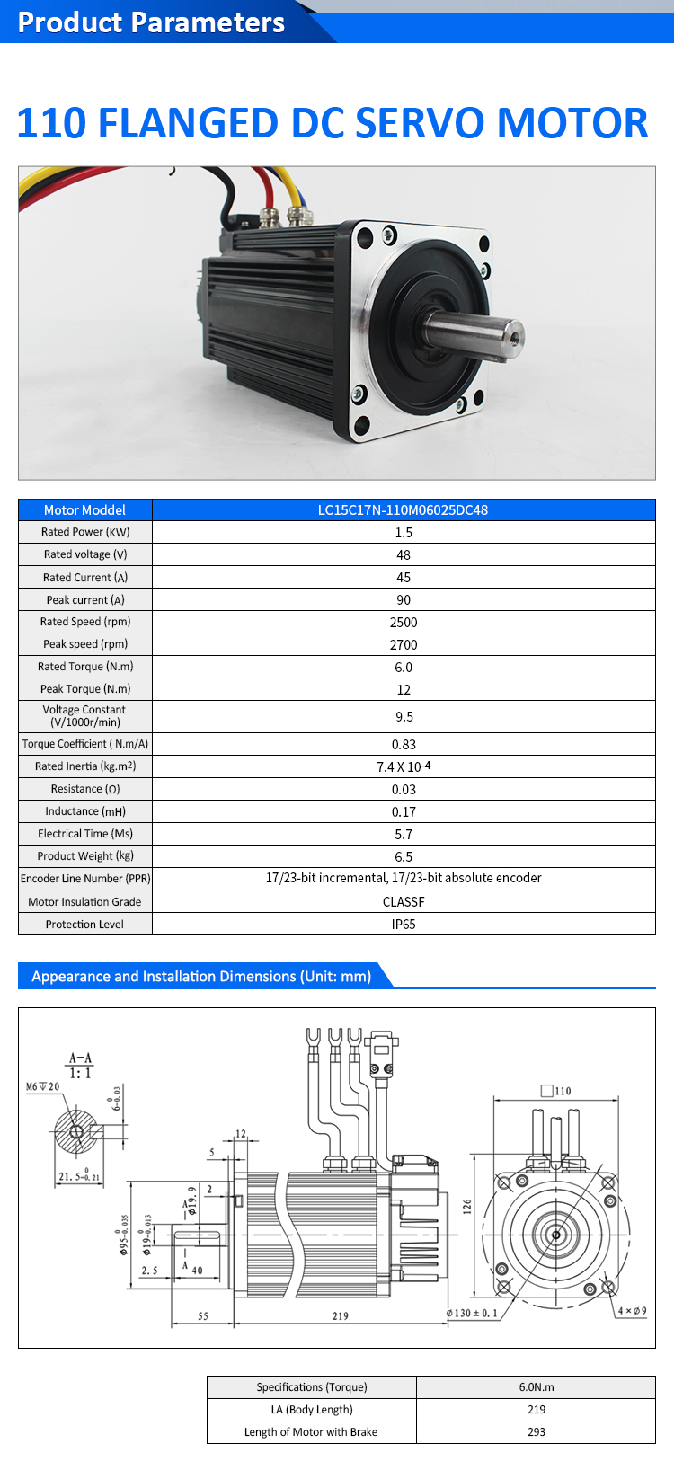Sada ovladačů pro nízkonapěťový DC servomotor Pulse/RS485/CANopen/EtherCAT 60 FLANGED 400W