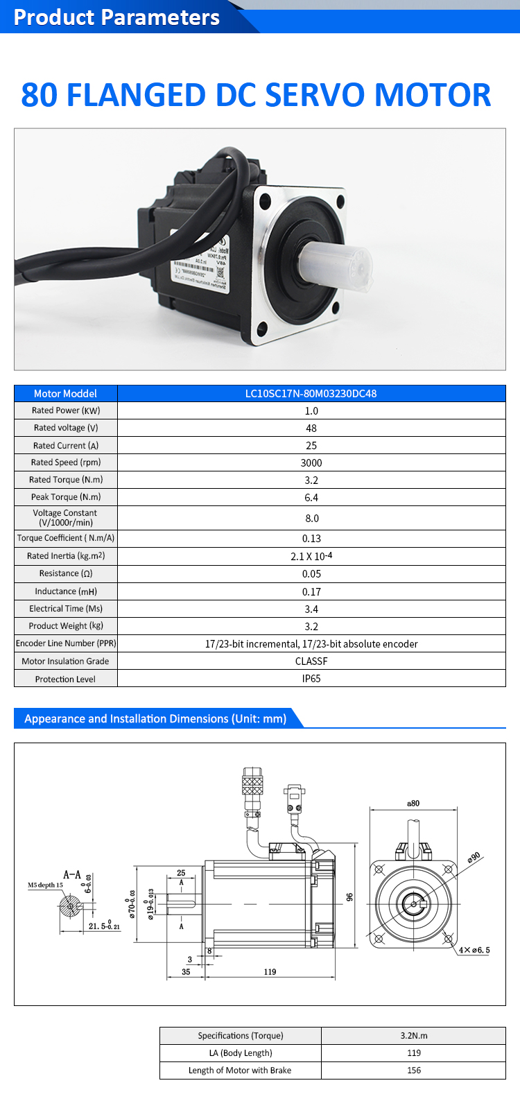 Sada ovladačů pro nízkonapěťový DC servomotor Pulse/RS485/CANopen/EtherCAT 60 FLANGED 400W